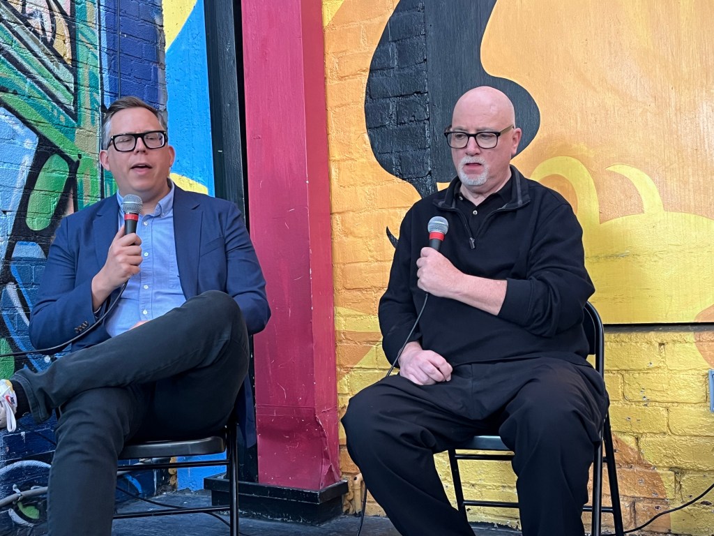Author Andy McCullough and Moderator/Columnist Bill Plaschke at Stories Bookstore.